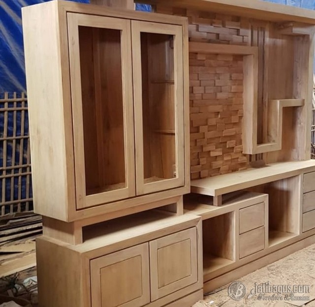 Penyekat ruangan yang berbentul rak mungkin sudah biasa di temui. Namun, Penyekat ini memiliki ketahanan yang tinggi mengingat bahannya dari kayu jati. Untuk detail warnanya menggunakan warna coklat sedikit gelap.